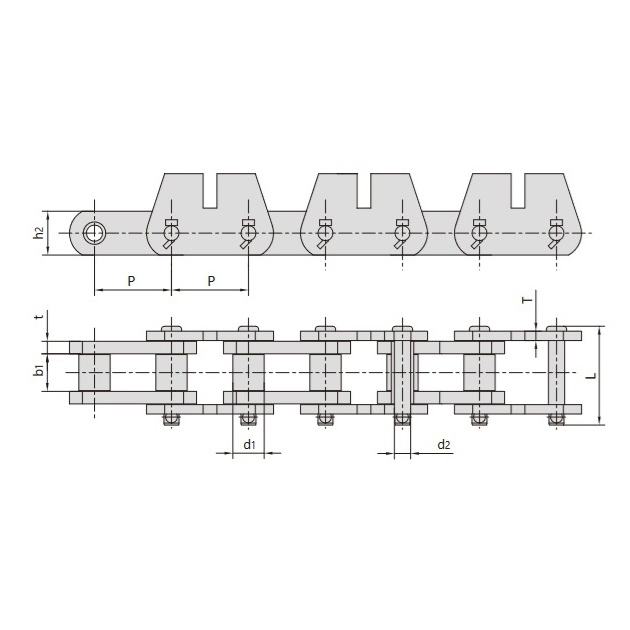Sammanfattningsvis ger transportörkedjan med fästplatta förbättrad stabilitet, anpassningsförmåga och hållbarhet, vilket säkerställer effektiv och tillförlitlig materialhantering i olika industriella miljöer.