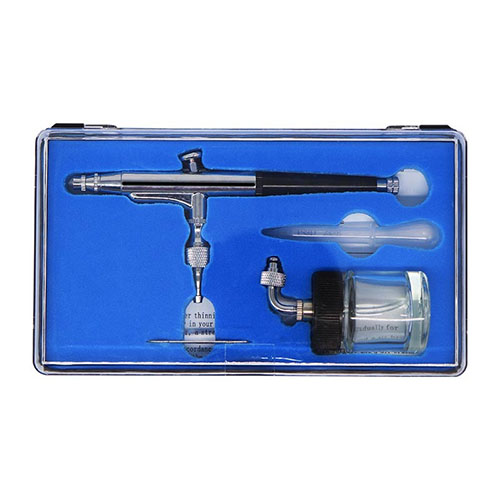 Baserat på dess interna komplexa luft- och vätskeflödeskontrollsystem. Den dubbla funktionen hos avtryckaren gör att användaren kan reglera både luft- och färgflödet samtidigt för exakt kontroll av sprayeffekten. Luften inuti airbrushen sprutas ut genom munstycket och driver färgen genom sugledningen för att skapa en enhetlig, fin sprayeffekt. Munstyckets utformning gör att färgen kan sprutas i mikroskopiska partiklar, vilket gör den lämplig för arbeten som kräver detaljprecision, t.ex. konstmålning och modellering.