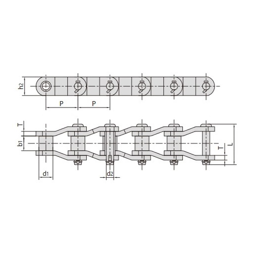 - Böjda plattlänkar:Den böjda konstruktionen gör att kedjan kan absorbera stora slagbelastningar samtidigt som den bibehåller överlägsen flexibilitet, även under svåra arbetsförhållanden.