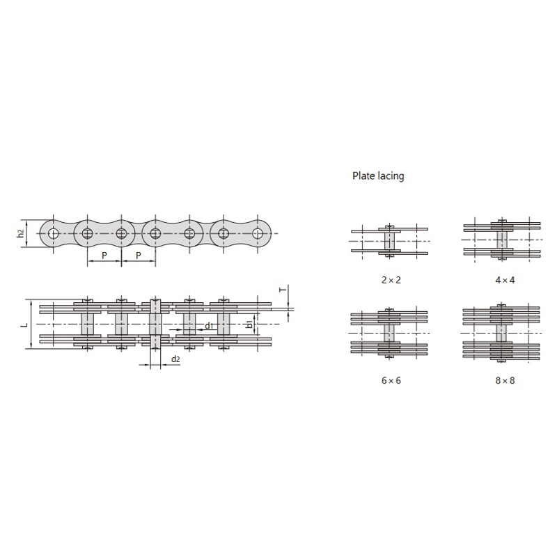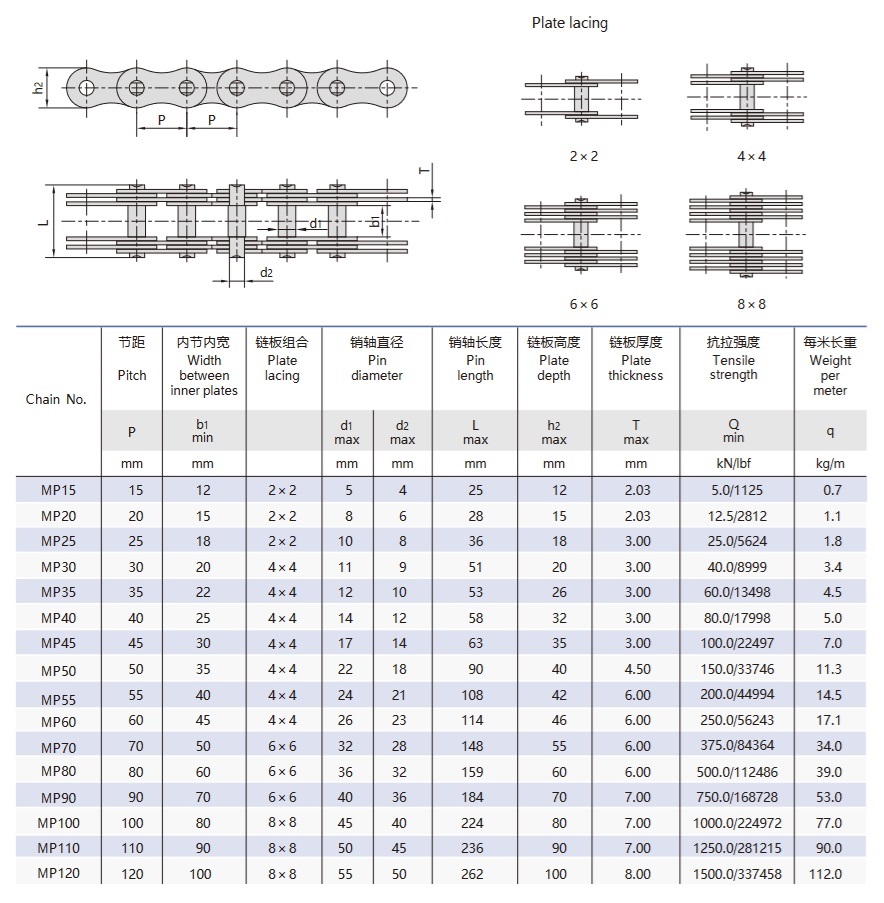 - Kombination av två tjocka kedjeplattor och tre tunna kedjeplattor, vilket ger en jämn och symmetrisk kraft utan ytterligare böjmoment.