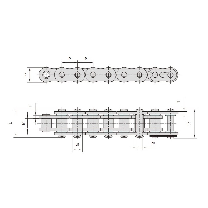- Inre kedjeplattor och stift:Flera par inre kedjeplattor är sammankopplade med stift, vilket ger en robust och stabil kraftöverföring.