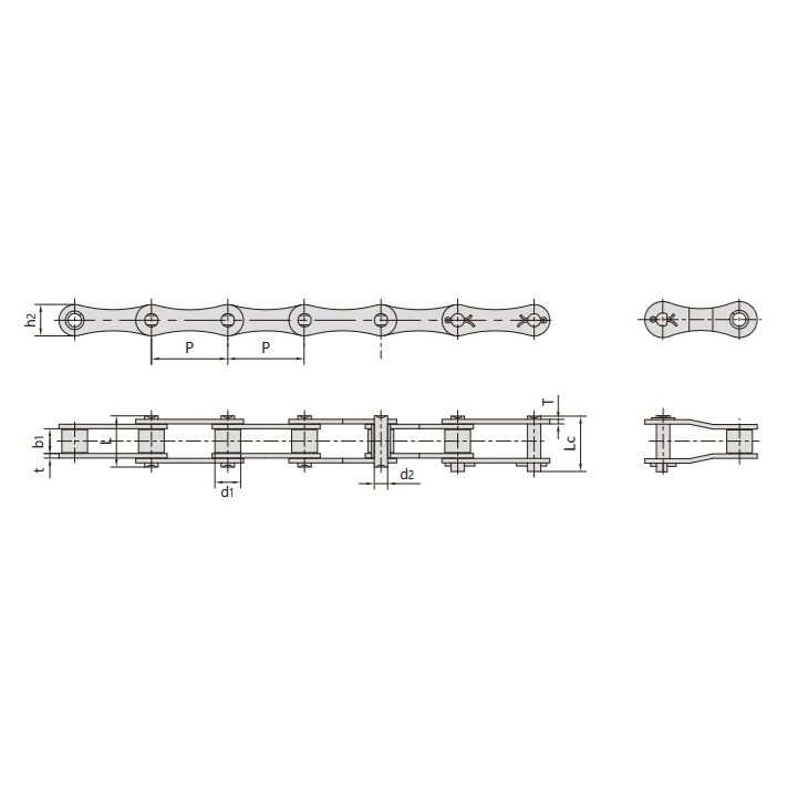 • Design med dubbel delning:Kedjans delning är dubbelt så stor som hos vanliga rullkedjor med kort delning, vilket gör den lättare samtidigt som styrkan bibehålls. Idealisk för längre transportsträckor, lägre hastigheter och längre avstånd mellan transmissionscentrum.