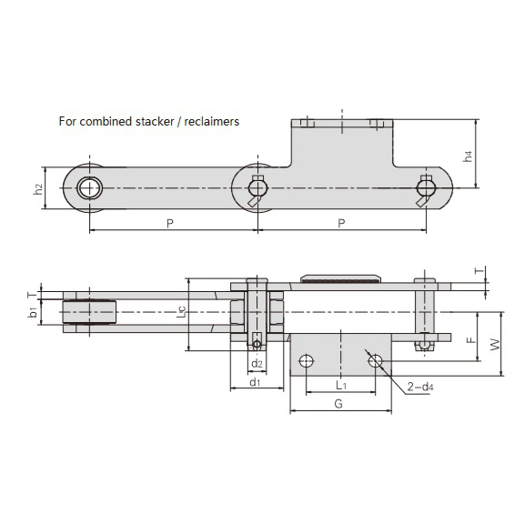 Kedja för staplare och återvinnare med fästplattaär konstruerad för överlägsen hållbarhet och anpassningsförmåga, vilket gör den till ett idealiskt val för krävande materialhanteringsmiljöer. Kedjan är tillverkad av legerat stål och har genomgått avancerad värmebehandling, vilket ger enastående slitstyrka och lång livslängd, även under hög belastning och tuffa förhållanden.